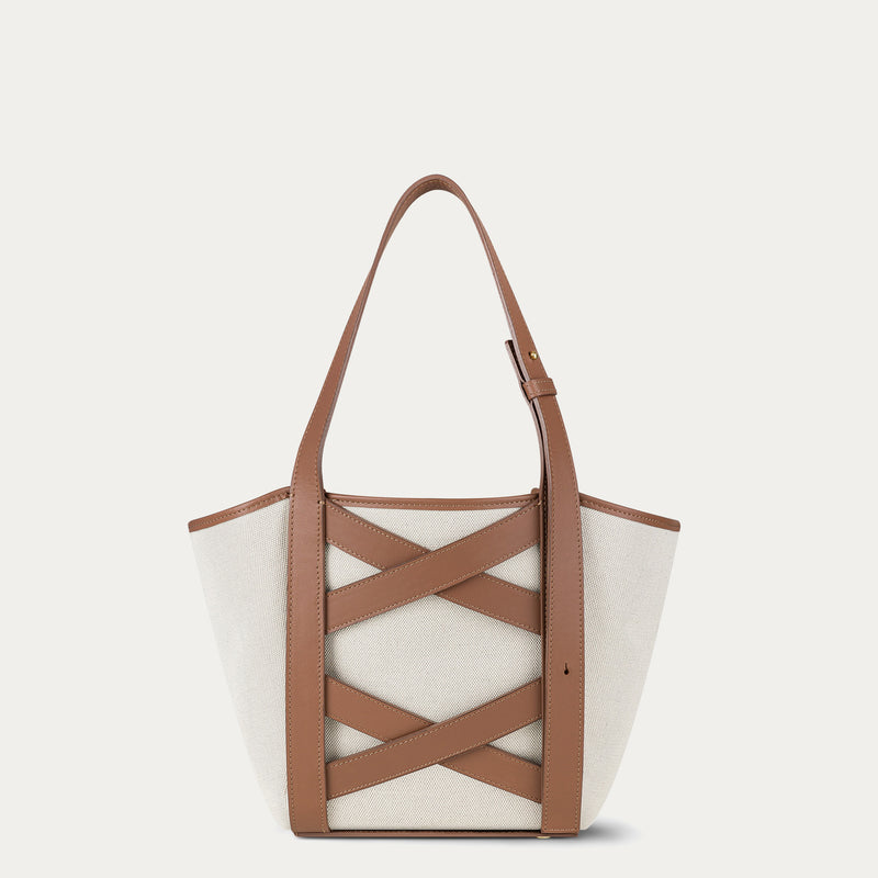 Diese mit weichen Kurven gefüllte geschnitzte Korbbeutel beeindruckt mit zwei magischen Veränderungen. Es kann die Form eines Korbs mit offenen Seiten oder in die Form einer Tasche verwandeln, nachdem sie die inneren Karabiner befestigt haben. Ihr Griff ist mit Hilfe von Knopes verstellbar. Es können zwei Längen sein, Schulter und Hand. Ledertaschen auf der Tasche, die an einer subtilen Kreuzung angeordnet sind, beziehen sich auf traditionelle Motive, die in Holzarchitektur verwendet werden.