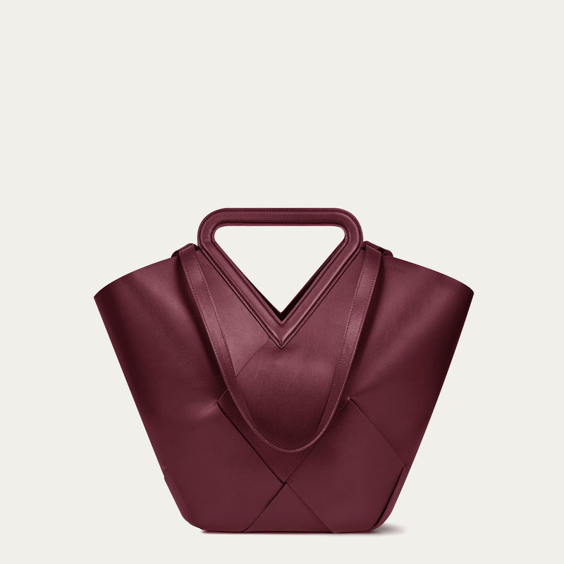 Eine Lederbeutel des Korbs sowohl vorne als auch nach hinten hat einen Hub der Hautflecken, um ein Muster -ähnliches Muster zu bilden. Der Korb kann auf der Schulter getragen werden oder einen weichen Griff halten, dessen Form subtil auf das Herz bezieht und eine Tüte mit einem charmanten, romantischen Charakter hinzufügt. Im Inneren haben wir Ledergurte ein praktisches und elegantes Element der Ausrüstung, mit dem Sie den Inhalt sichern können.