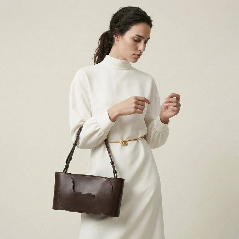 Panna 7 to niezwykle elegancka torebka skórzana, która redefiniuje pojęcie nowoczesnej klasyki. Wykonana z najwyższej jakości skóry naturalnej, zachwyca swoją architektoniczną konstrukcją. Jej unikalny design wyróżnia się charakterystycznym, rzemieślniczym ornamentem – płaty skóry zostały mistrzowsko zszyte w taki sposób, by tworzyć przestrzenny wzór nawiązujący do zaplecionego warkocza. Ten subtelny detal otacza całą bryłę, nadając torebce absolutnie wyjątkowego i luksusowego charakteru.