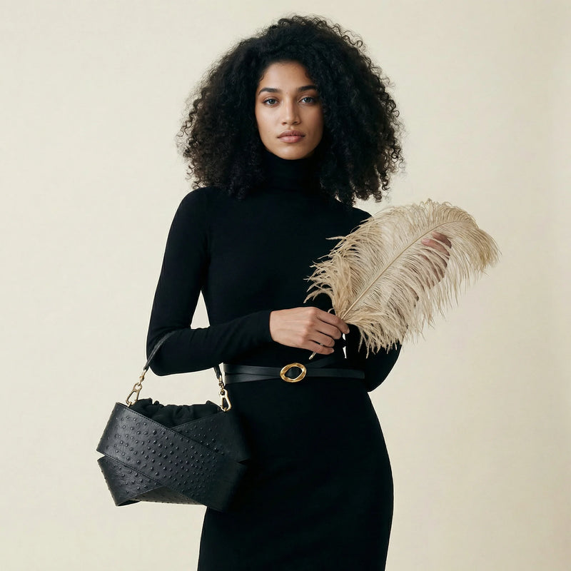 Forma torby, stworzona z dwóch kawałków skóry owiniętych wokół siebie, przyciąga uwagę swoim nowoczesnym wyglądem. W jej wnętrzu znajduje się luzem umieszczony woreczek, który skutecznie zabezpiecza zawartość przed przypadkowym wypadnięciem. Co więcej, woreczek można łatwo wymieniać, co pozwala na personalizację torby i nadanie jej nowego charakteru. Torba wyposażona jest w pasek na ramię, który zapewnia wygodę noszenia, oraz elegancką rączkę ze złotymi okuciami. Jest elegancka ale i praktyczna