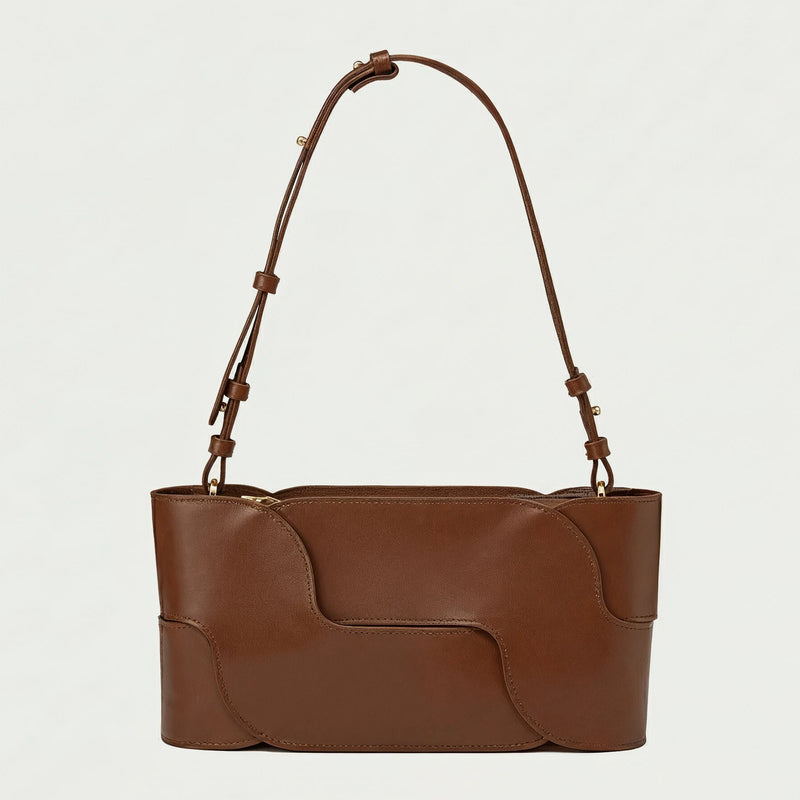 Minimalistyczna, a jednocześnie pełna wyrazu forma sprawia, że torebka świetnie komponuje się zarówno z codziennymi stylizacjami, jak i bardziej eleganckimi zestawami. Regulowany pasek ze złotymi detalami pozwala nosić ją wygodnie na ramieniu lub w dłoni.