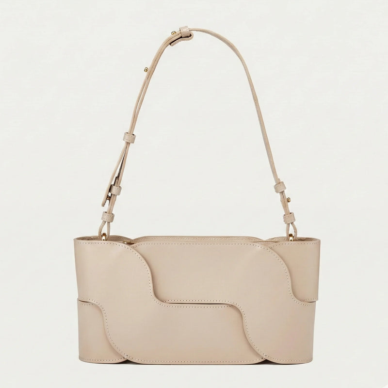 Minimalistyczna, a jednocześnie pełna wyrazu forma sprawia, że torebka świetnie komponuje się zarówno z codziennymi stylizacjami, jak i bardziej eleganckimi zestawami. Regulowany pasek ze złotymi detalami pozwala nosić ją wygodnie na ramieniu lub w dłoni.