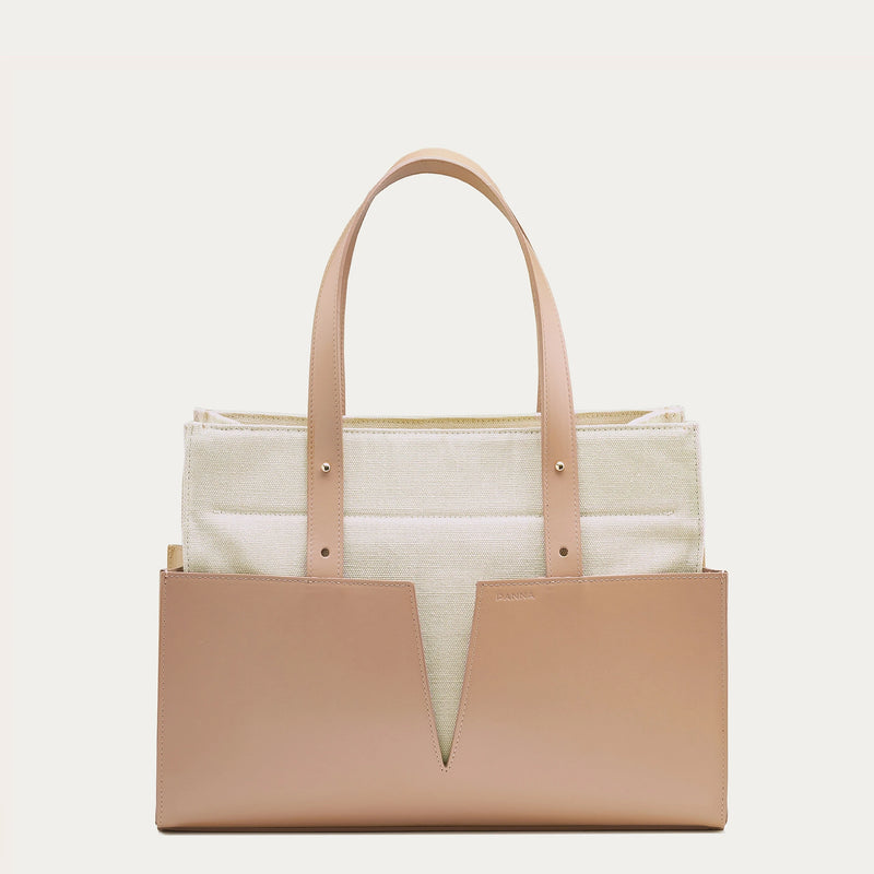 Dzięki możliwości wypięcia wnętrza i przekształcenia go w osobną, letnią torbę (po dołączeniu dodatkowych skórzanych rączek), Pierwsza Panna Wysoka zyskuje lekkość i letni charakter – idealna na weekend, wakacje czy spontaniczne wyjście na miasto.