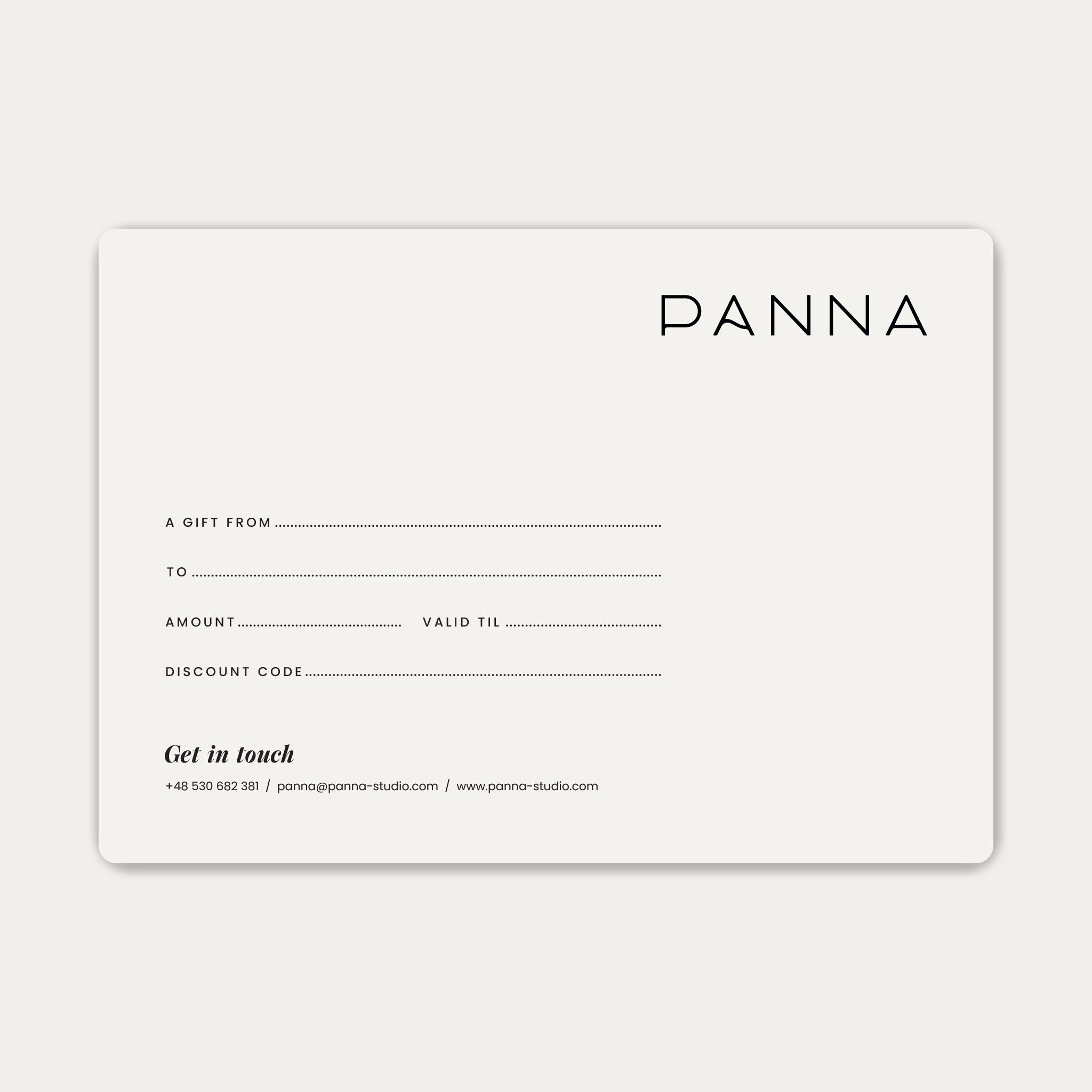 Są prezenty, które urzekają swoją prostotą i elegancją. Bon PANNA o wartości 150, 300 lub 500 zł to delikatny sposób, by powiedzieć: „myślę o Tobie”.
